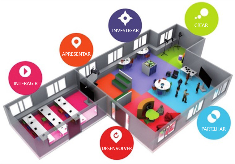 A Sala de Aula do Futuro iria identificar aspetos específicos de Ensino e Aprendizagem para ajudar a re-imaginar os espaços físicos, os recursos, a mudança de papéis entre alunos e professores e como suportar diferentes estilos de aprendizagem.